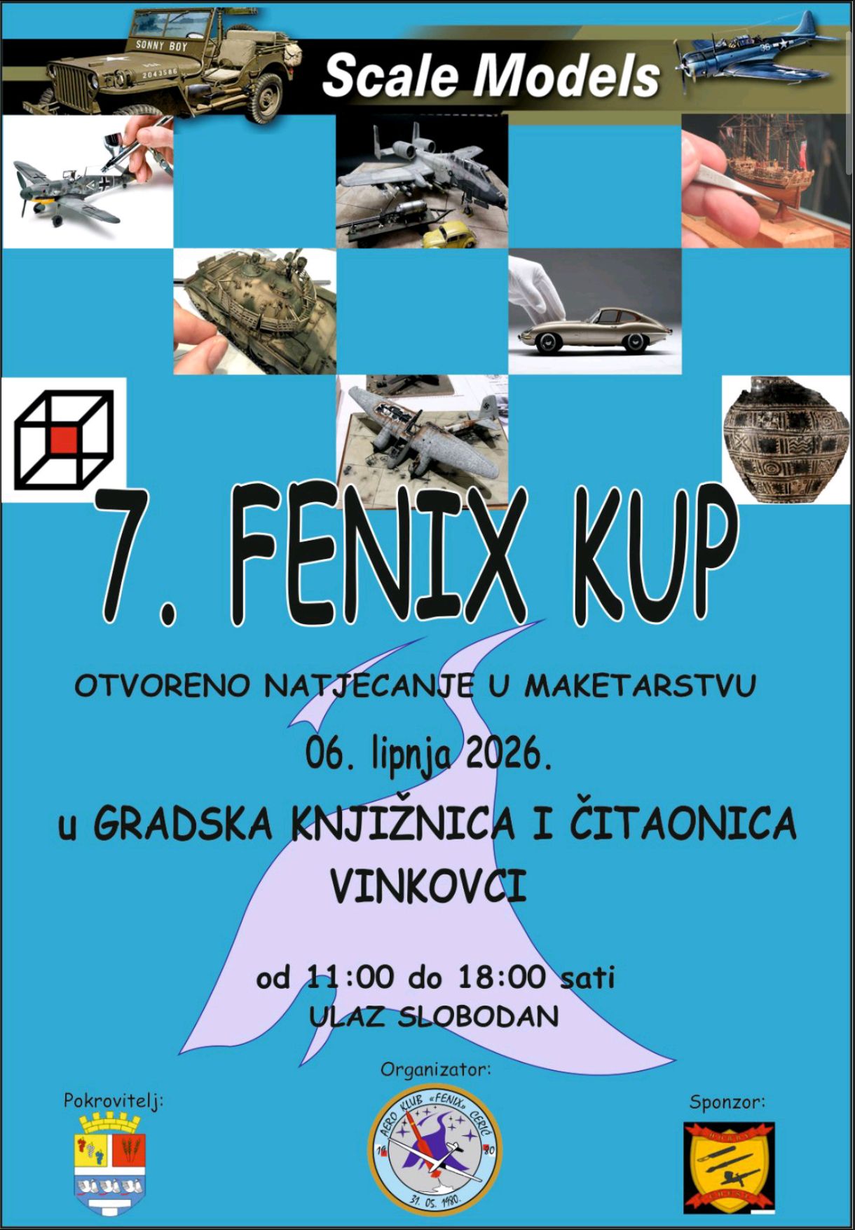 7. Fenix kup u maketarstvu, koji će se održati 6. lipnja 2026. godine u prostorijama Gradske knjižnice i čitaonice Vinkovci. Ovaj događaj okupiti će mnoge zaljubljenike u maketarstvo a posjetiteljima približiti vrijednosti ove tehničke discipline.