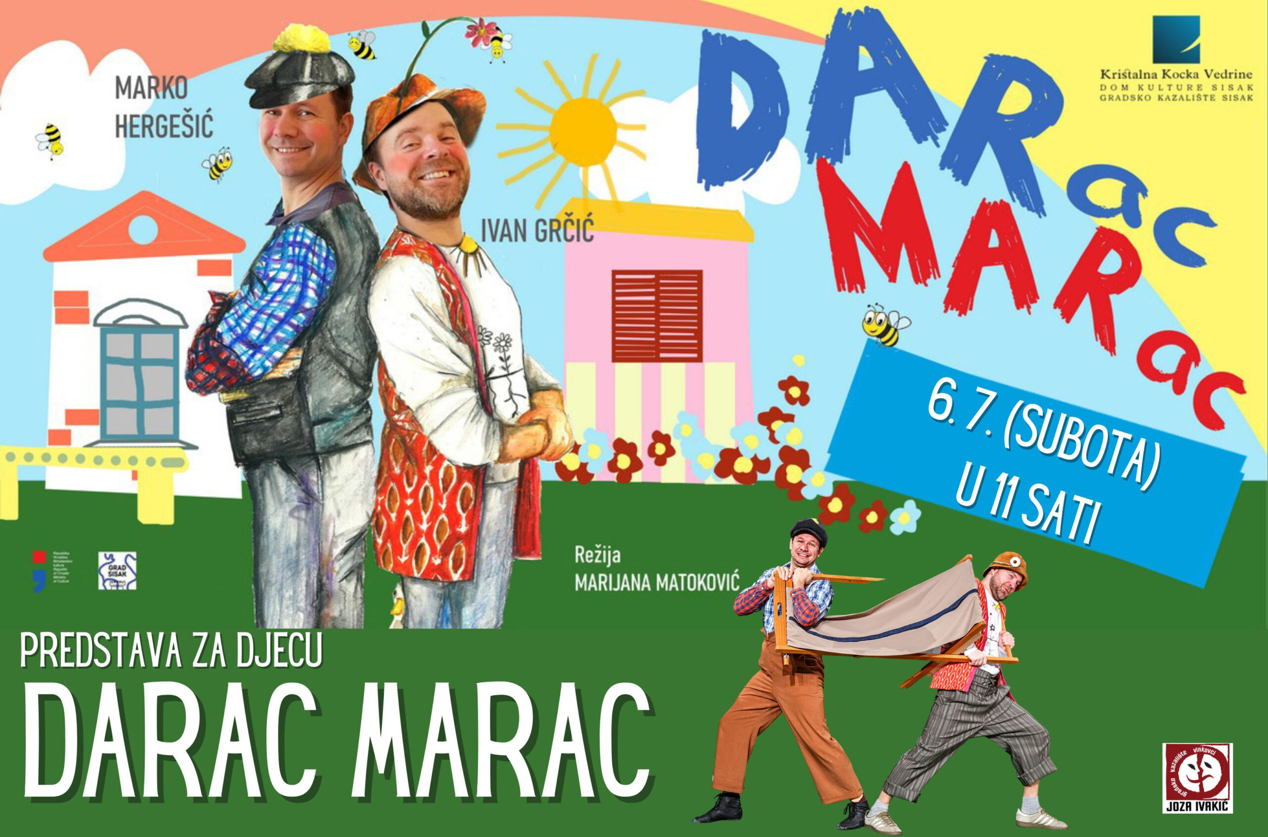 06.07.2024.Predstava za djecu DARac MARac Subota, 6. srpnja u 11:00 sati – predstava za djecu DARac MARac Režija i dramaturgija: Marijana Matoković Gradsko kazalište Joza Ivakić Vinkovci