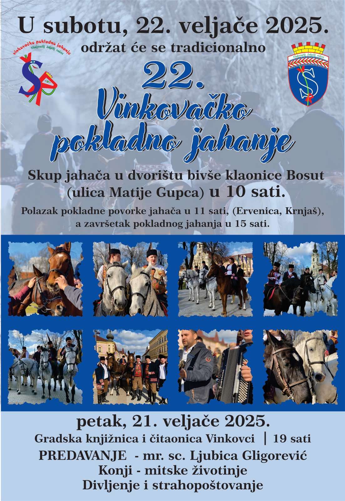 Udruga Vinkovački šokački rodovi održava tradiciju pokladnog jahanja u Vinkovcima koje će se po 22. puta održati u subotu, 22. veljače 2025. god.