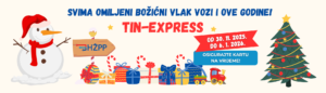 I ove će godine u božićno vrijeme vlakovi u Zagrebu, Rijeci, Splitu, Varaždinu, Čakovcu, Koprivnici, Vinkovcima, Osijeku, Slavonskom Brodu, Bjelovaru i Virovitici biti ispunjeni smijehom jer ponovno stiže Tin-express. Pozivamo djecu, roditelje, djedove i bake, tete i sve druge na veselo druženje u okićenim vlakovima u kojima vlada dobro raspoloženje jer Djed Božićnjak svakom djetetu uručuje dar, a odraslima izmamljuje osmijeh.