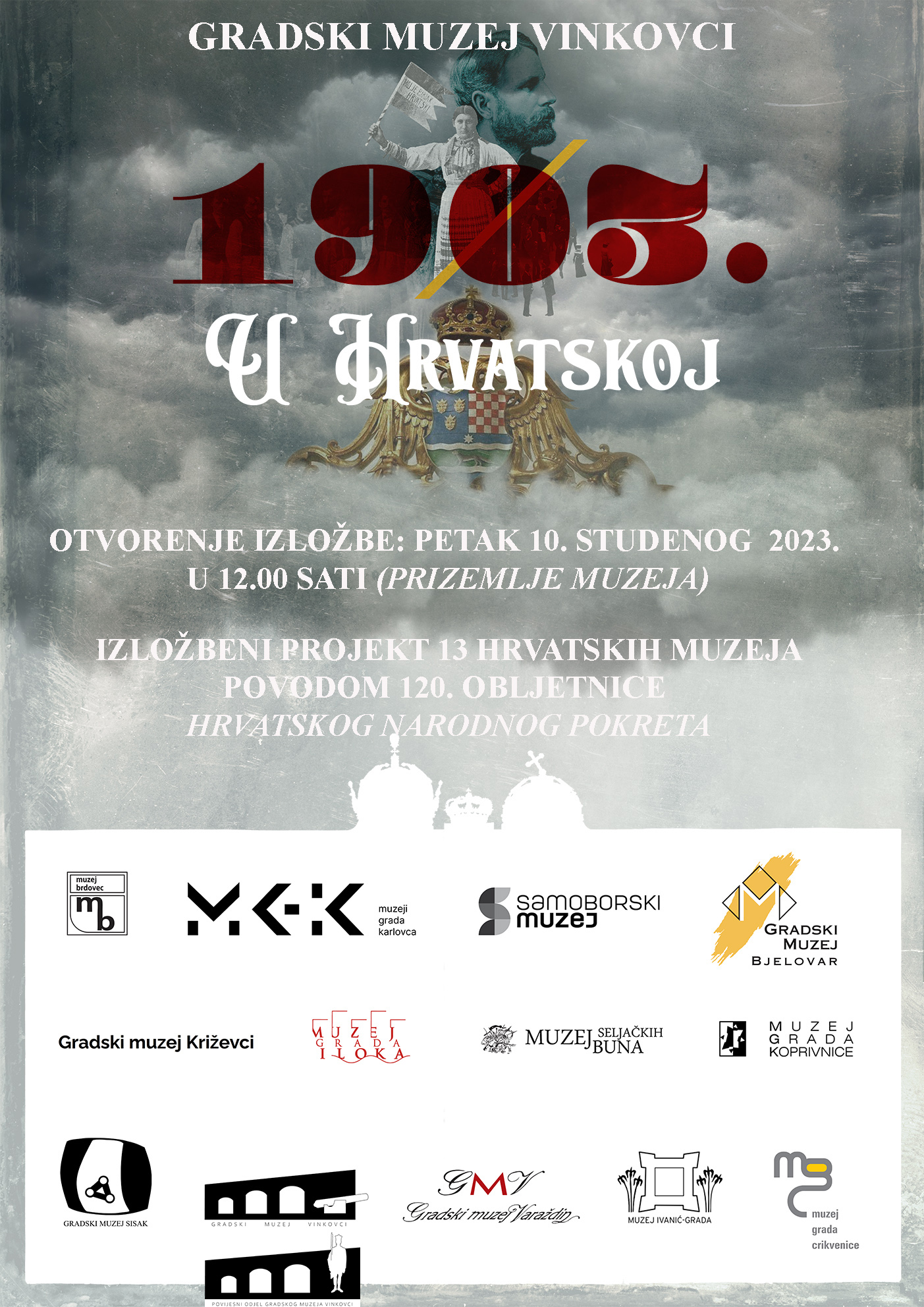 Izložba „1903. u Hrvatskoj“ izložbeni je projekt trinaest hrvatskih muzeja u povodu 120 obljetnice Hrvatskog narodnog pokreta. Radi se o putujućoj izložbi o narodnom protumađarskom i protumađaronskom pokretu koji se u proljeće 1903. godine, nakon sukoba vojske i seljaka u Zaprešiću povodom skidanja mađarske zastave sa željezničke postaje, proširio Banskom Hrvatskom. Uzrok nemirima bila je promađarska 20-godišnja vladavina bana Khuena Hedervaryja. Nemiri su u manjoj mjeri zahvatili i prostor itadašnje Srijemske žušpanije, odnosno pojedina mjesta tadašnjeg Kotara Vinkovci, poput Ivankova, Vođinca i Mikanovaca, a u manjoj mjeri i Vinkovaca. Na izložbi uz organizatora, Muzej Brdovec, građom svojih zbirki i predstavljanjem izložbe u svom prostoru sudjeluje još 12 muzeja, među njima i Gradski muzej Vinkovci. Izložba će se moći razgledati prilikom otvorenja i u redovito radno vrijeme Gradskog muzeja Vinkovci poševši od 10. studenog 2023.